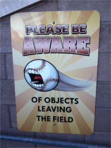 Clubs can also correctly point to the messaging throughout every ballpark warning fans to stay aware for objects coming off the field into the stands, as well as the disclaimer language on every (increasingly rare) printed ticket and team web site informing fans of the risks inherent in a game played by strong young men trying to hit hard balls with wooden bats.