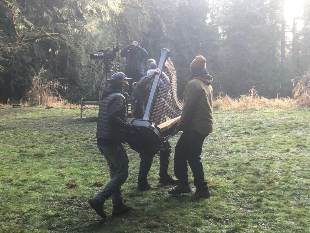 I look forward to getting back to work in 2021. For a while, at least, it’s going to require people being smart and working together, like these guys carrying an artist’s harp before an outdoor show in Oregon last month. Everyone on site had gotten a PCR test before they traveled, I administered rapid antigen tests when they arrived on site, and they wore face coverings the entire time. I love this picture because it shows event professionals who earned paychecks during the pandemic by following health and safety rules.